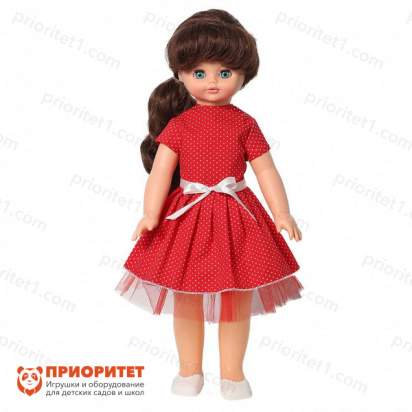 Говорящая кукла «Алиса» (Кэжуал №1) – современная кукла, которая непременно станет лучшей подругой для ребенка. Кукла одета в хлопчатобумажное платье-солнце-клеш в белый горох, нижний ярус которого выполнен из органзы и значительно выступает за пределы. Акцентом на платье является пояс из ленты завязанный на бантик. На ногах аккуратные туфли. Все элементы одежды легко снимаются и заменяются при возможности на другие. При постоянных переодеваниях тренируется мелкая моторика и развиваются воображение и творческий потенциал.