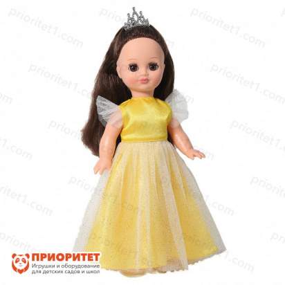 Говорящая кукла «Герда» – преданная подруга-принцесса для вашего ребенка. Необычный желтый наряд привлечет внимание даже отъявленного сорванца. Каждая девочка будет гордиться тем, что имеет такую красотку. Одежда куклы состоит из нарядного платья. Комбинация креп-сатина и органзы придают наряду воздушности и чего-то необычного. На ногах легкие туфельки, а на голове – величественная диадема.