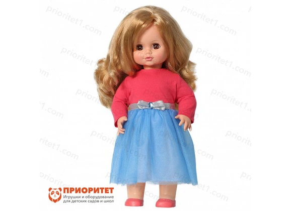Говорящая кукла «Инна» – современная игрушка с длинными волосами в стильной одежде. Она сможет стать настоящей любимицей для ребенка. Кукла одета в яркое платье – верх выполнен из трикотажной ткани, низ – из органзы. Талия отделана поясом-лентой с бантиком. На ногах удобные туфли в виде балеток. Куклу очень легко раздеть и надеть на нее новый наряд из дополнительно приобретенного или пошитого набора. Игра с переодеванием хорошо развивает мелкую моторику и формирует чувство стиля.