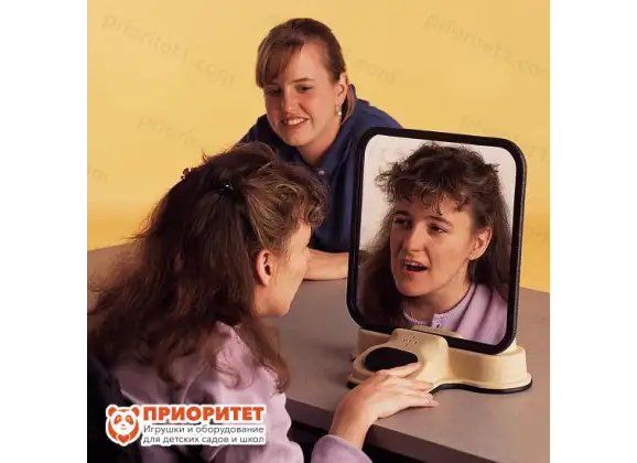 Зеркало для логопедических занятий отлично подходит для коррекции звуков и развития артикуляции. Оно умеет записывать и воспроизводить речь малыша без искажений его слуховым аппаратом, что даёт возможность ребёнку услышать себя со стороны и скорректировать произношение некоторых звуков. Записать можно до 60 секунд, а новая запись удаляет предыдущую. Питается зеркало от четырёх пальчиковых батареек типа АА. Конструкция выполнена из зеркального акрила, который отличается своими антивандальными свойствами. Оно не бьется, не колется, а скруглённые углы и грани исключают риск возникновения случайных травм.