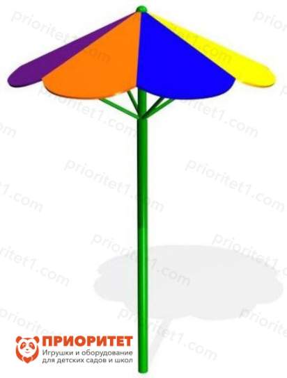 - Грибок сделан в форме цветка, где каждый лепесток покрашен в разные цвета. С ним дети могут не только спрятаться от солнца, но и изучить основную палитру.