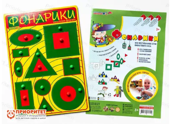 - Красно-зелёные «Фонарики» — это сортер, в ходе которого ребёнок будет распределять детали по цвету, форме и размеру. Развивающая игра соответствует требованиям ФГОС.