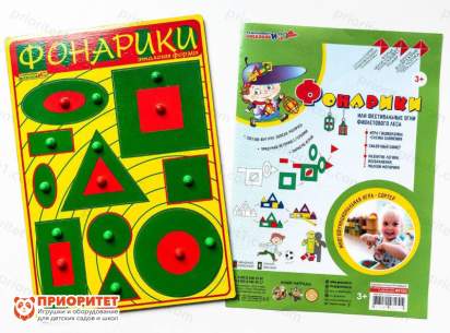 - Благодаря «Фонарикам» малыш выучит геометрические формы, научится сравнивать фигуры по цвету, размеру, форме, подсчитывать их количество, замечать их явные особенности. Ребёнок будет составлять из элементов комбинации по образцу. На первых этапах надо играть только в поле, затем можно придумывать фигуры самостоятельно и собирать их на столе.