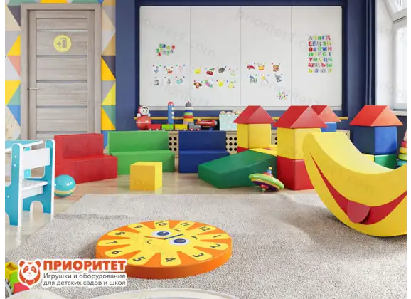 - Мягкие модули разной формы способствуют укреплению у детей координации и моторики. Тактильное изучение форм способствует закреплению в памяти основных геометрических линий. На основе этого формируется ассоциативный ряд с окружающими предметами.
