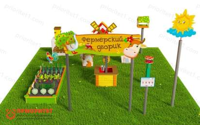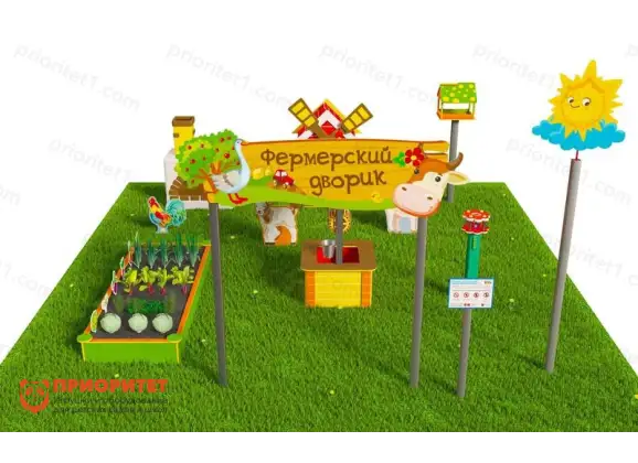 Игровая развивающая площадка «Фермерский дворик» (комплект «Лайт 1») — компактная и функциональная зона для игр и обучения на свежем воздухе. Модель создана специально для небольших территорий: детских садов, придомовых площадок, мини‑клубов и загородных участков. Площадка знакомит детей с миром сельского хозяйства в игровой форме, развивает моторику, логику и коммуникативные навыки.