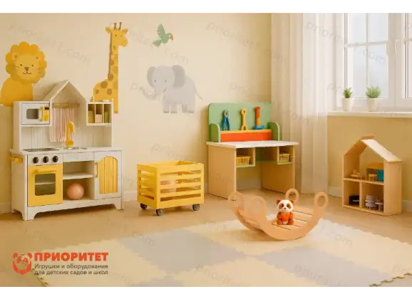 Комплект мебели для игровой зоны ясельной группы разработан в соответствии с Приказом Минпросвещения РФ №1057 и отвечает современным требованиям к оснащению игровых зон в ясельных группах. Набор включает функциональные модули для хранения, игровые элементы и оборудование, которые помогают организовать пространство группы, поддерживать порядок и создавать условия для сюжетно-ролевых и развивающих игр детей. Все изделия выполнены из безопасных материалов, соответствующих санитарным нормам и требованиям ФГОС.