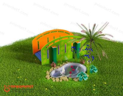 - Декоративная пластиковая ниша с искусственным водоёмом вмещает небольшой объём воды и является безопасной для малышей. Игровая зона «Мостик и водоем» станет идеальным местом для подвижных игр, но важно, чтобы дети проводили время на ней под присмотром воспитателя.