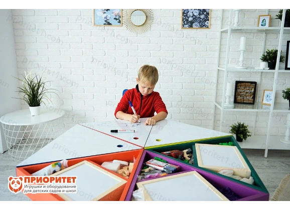Многофункциональный стол для творчества – настоящая находка для педагогов. Он представляет собой продуманную до мелочей конструкцию, которая даже самим внешнем оформлением вдохновляет на яркие идеи. Внутреннее же наполнение максимально практично для удобства детей и педагога. Такая мебель станет украшением игровой комнаты.