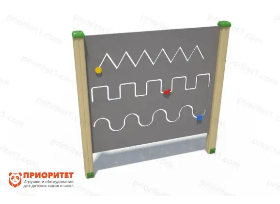 - Представляет собой небольшую вертикальную доску, на которой вырезаны три игровых пути: треугольный и квадратный зигзаги, и волна. Каждый имеет личный бегунок, различный по цвету и форме: так здесь есть круг, квадрат и прямоугольник.