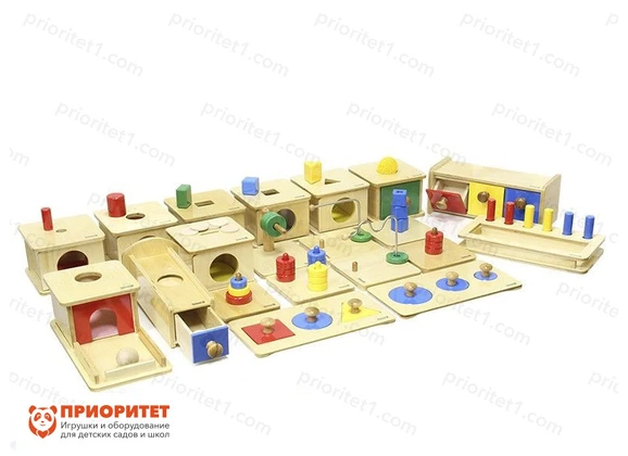 - 4 коробочки (с ящичками, шариками, цилиндрами-вкладышами, мячиками);