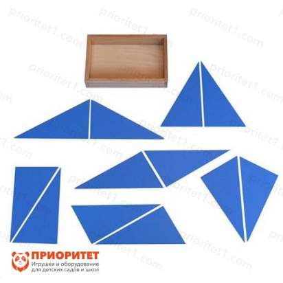 С помощью игрового наборе «Голубые конструктивные треугольники» ребенок научится складывать четырехугольники из треугольников. Работая с элементами, на сенсорном опыте приходит понимание того, что из разных фигур собираются разные геометрические формы. Игра развивает ряд навыков, в том числе и логическое, пространственное мышление. Используется набор в комплексе развивающих игр в обучающих дошкольных центрах и домашних условиях.