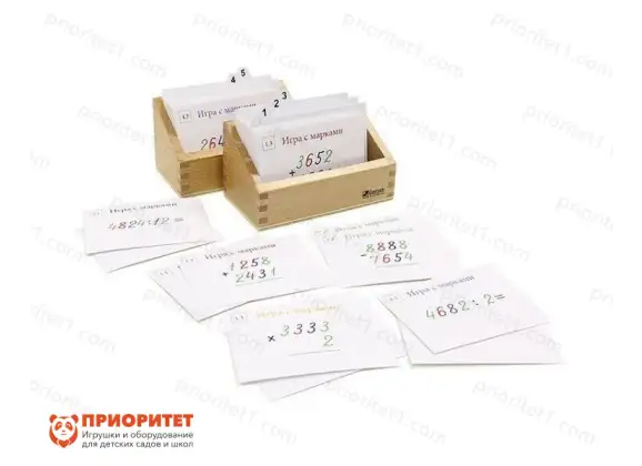 - Дидактический набор состоит из 5 частей. Первые 4 раздела посвящены отдельному арифметическому действию (сложению, вычитанию, умножению, делению), а пятый — делению на двузначное и трёхзначное число.