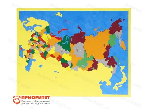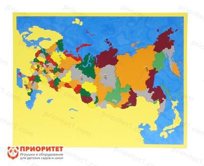 - Все элементы пазла складываются последовательно по контуру на специальной доске, где остальные страны, расположенные на материке, окрашены в желтый цвет. Голубым цветом обозначены моря и океаны, которые омывают берега Российской Федерации;