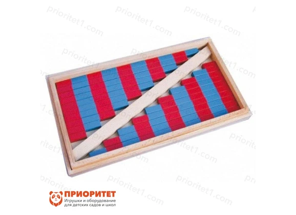Для обучения счету нестандартным методом применяется набор «Настольные числовые штанги», представляющий собой деревянный ящик с двумя отделениями. В игре используются красно-синие штанги длиной от 2,5 до 25см и сечением 1х1см. С помощью этого материала ребенок осваивает навыки сравнения чисел, так как можно наглядно увидеть решение примеров. Косвенно осваивается десятичная система и работа с числами. Применяют набор для детей от четырех лет.