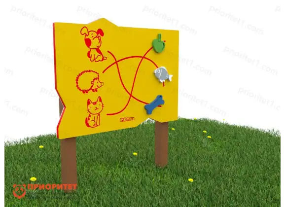 Кушать подано! Этот развивающий модуль представляет собой уличную версию популярной дидактической игры «Кто что ест». Перед детьми находятся три животных, которых нужно накормить, и задача состоит в том, чтобы выбрать для каждого из них подходящее лакомство. Это задание помогает детям закрепить знания о природе, развивает их мышление, внимание, память и познавательный интерес, а также стимулирует желание заботиться о животных.