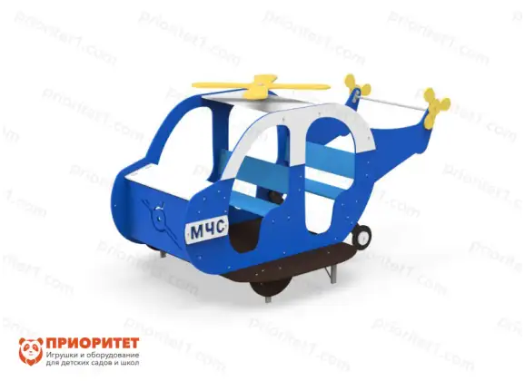 - Вертолет имеет сиденье, каркасную часть, декоративные элементы, опорные стойки.