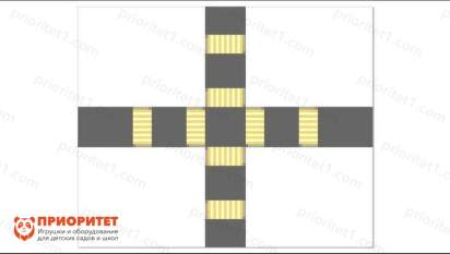 Имитация проезжей части размером 11x9 метров — это полноразмерное покрытие, предназначенное для создания учебного полигона, имитирующего реальную дорогу. Баннер подходит для использования в помещениях, позволяя проводить занятия по правилам дорожного движения в условиях, приближенных к реальным.