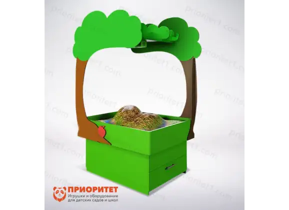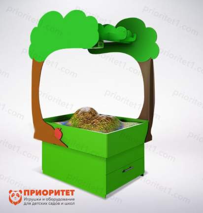 - В комплекте: песок в количестве 100 кг, металлический каркас с колесиками и крышка для резервуара, которая является интерактивным столом.