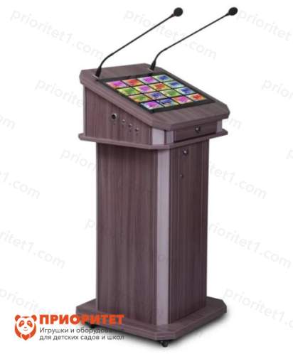 - Интерактивный дисплей расположен под универсальным углом, чтобы было удобно работать с трибуной и маленьким, и большим ораторам;
