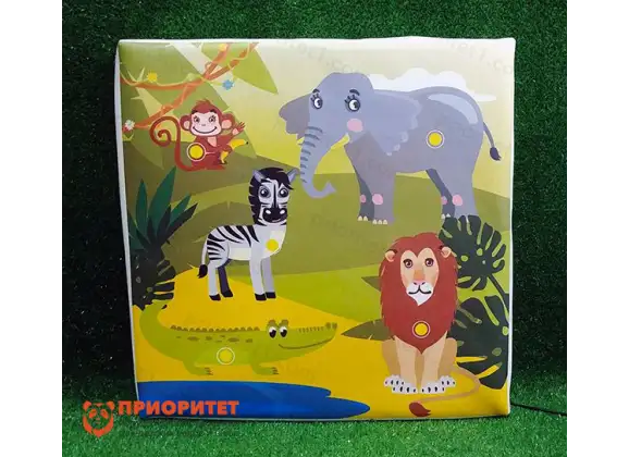 «Джунгли» — это уникальная мягкая настенная панель, предназначенная для интерактивного изучения животного мира тропиков. Данная игрушка позволит ребенку услышать голоса экзотических обитателей джунглей всего одним прикосновением. Идеальна для игрового уголка, детской площадки, учебных классов или дома.