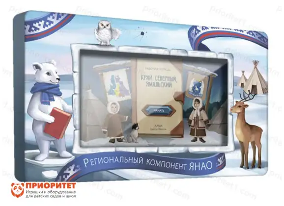 Интерактивный комплекс «Региональный компонент ЯНАО» (25 дюймов) – электронная панель, разработанная для обучения и знакомства детей с одним из регионов России. Программа обучения включает в себя историю региона, его культуру и природу. Процесс обучения происходит в игровом формате. Красочное оформление обучающего материала помогает с легкостью запомнить полученную информацию.