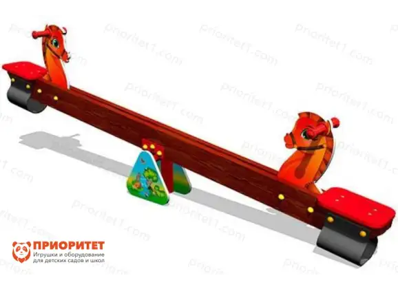 Тематическое оформление качалки поможет ребенку представить себя в роли наездника лихого скакуна. Сиденья балансира декорированы красивыми силуэтами лошадок, которые непременно привлекут внимание и вызовут желание покататься. А возможность пофантазировать сделает развлечение интересней и увлекательней. На качалке дети смогут проводить свой досуг самостоятельно. Общаться с друзьями и укреплять здоровье с помощью подвижных игр и нахождения на свежем воздухе.
