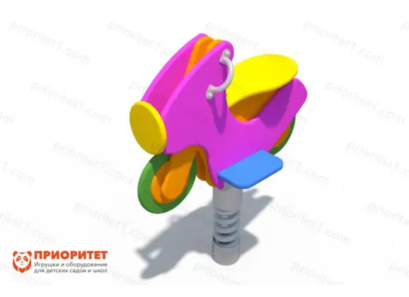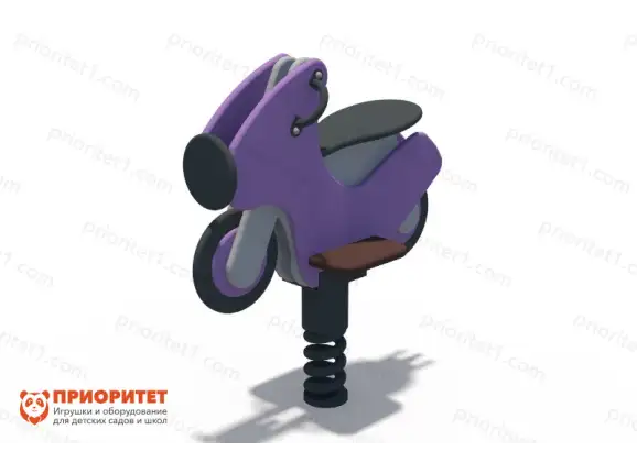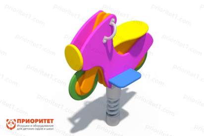 Качалка выполнена в виде мотоцикла и оснащена специальной пружиной, обеспечивающей легкую и активную подвижность конструкции. Дети смогут играть, заниматься спортом и развивать свои физические данные. Комплекс выступает одновременно как развлекательное и спортивное оборудование. Данный инструмент свободно используется в качестве самостоятельного изделия, а также грамотно дополняет игровой либо спортивный комплекс.
