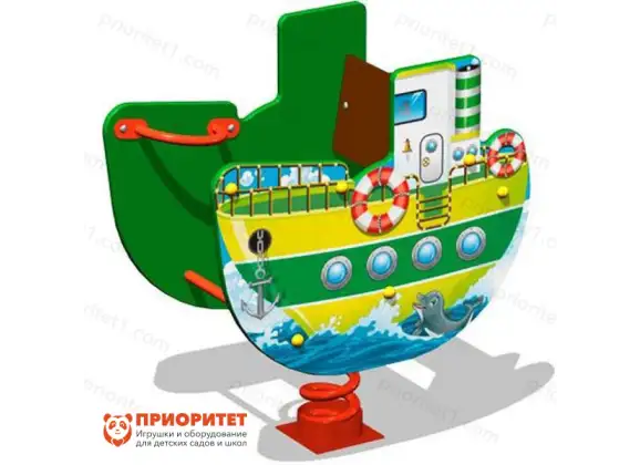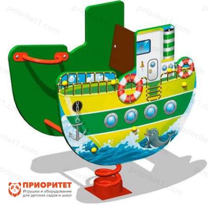 Качалка на пружине с милым названием «Пароходик» окрашена в спокойный зеленый цвет. На нее приятно посмотреть, она производит большое впечатление, вызывает приятные воспоминания у взрослых. Предназначена для организации повседневной досуговой деятельности для детей. Рекомендуется для возрастного порога 3-8 лет. Товар одобрен ФГОС.