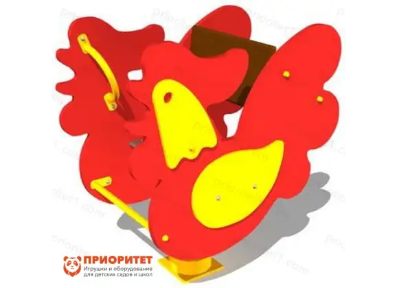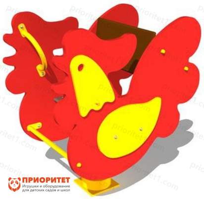 Она состоит из сиденья и боковых стенок, сделанных в виде петушка яркого красного цвета. Конструкция антивандальная, она надолго сохраняет свой первоначальный внешний вид и игровые характеристики.