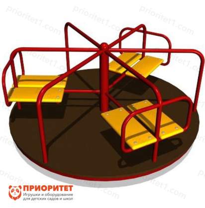 - Карусель раскручивается за счет вращающейся оси, к которой приварены опоры. Дети, используя для движения стационарный руль, тренируют мышцы кистей рук, развивают хватательный рефлекс и осваивают аналитические принципы, чтобы своевременно успеть перехватиться или отпустить руль. Кроме того, катание на карусели укрепляет вестибулярный аппарат, помогая детям научиться держать равновесие;