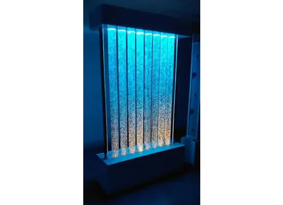 Колоннада пузырьковая — это эффектная воздушно‑пузырьковая колоннада из 8 прозрачных акриловых колонн с водой и потоками пузырьков, объединённых в единую композицию на общем основании. Динамика воздуха, мягкая смена оттенков и «живое» движение внутри трубок создают успокаивающий визуальный эффект и помогают сформировать комфортную среду для детей. Такое решение отлично подходит как сенсорное оборудование для детского сада, школ, развивающих центров и других организаций, где важно снять напряжение, удержать внимание и красиво оформить пространство. Колоннада работает от единого кабеля, размещённого в нижней части, а вся проводка скрыта, поэтому конструкция выглядит аккуратно и безопасно в интерьере.