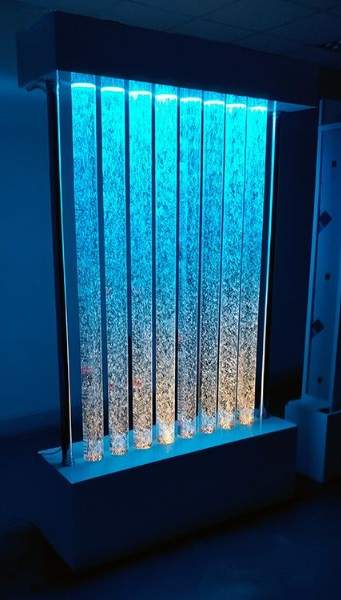 - Поток воздуха внутри каждой трубки регулируется индивидуально, что позволяет настроить «рисунок» пузырьков под задачу зоны: спокойный режим для релаксации или более активный — для вовлечения и наблюдения.