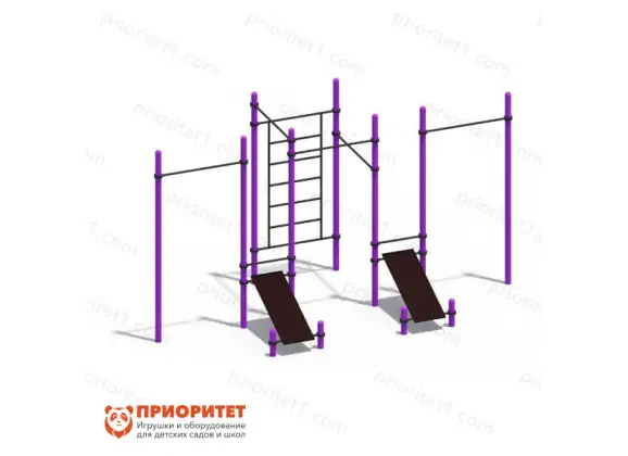 Детский спортивный объект. Представляет собой полноценный комплекс для физической активности. Обладает несколькими скамейками для упражнений «на пресс», лестницами, турниками и перекладинами. Используется на улицах. Может устанавливаться в дошкольных и школьных образовательных учреждениях, частных двориках, а также в общественных дворах. Способствует улучшению физического состояния здоровья малыша. Выделяется долговечностью. Изготавливается по стандартам ФГОС и только из сертифицированных материалов. Не требует специального ухода. Полностью подходит для использования детьми от 3-х лет. Малышам рекомендуется эксплуатация под взрослым наблюдением. Это – конструкция, которая может быть эксплуатирована одним или несколькими людьми одновременно.