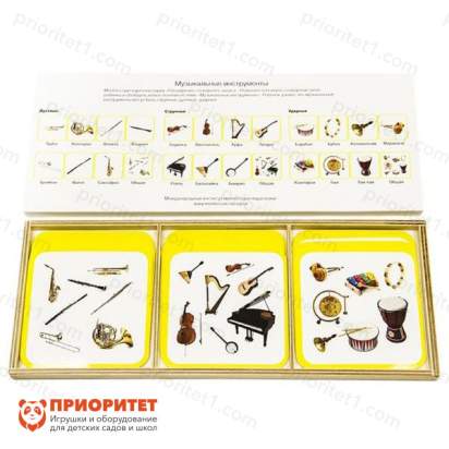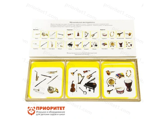 Комплект карточек Монтессори «Музыкальные инструменты» предназначен для обучения детей названиям, виду и классификации музыкальных инструментов.