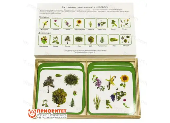 Комплект карточек Монтессори «Растения по отношению к человеку» – это наглядные материалы, предназначенные для познания окружающего мира маленьким непоседой. Вместе с ними ребенок узнает, какие растения относятся к культурным и дикорастущим видам, а также научится различать их.