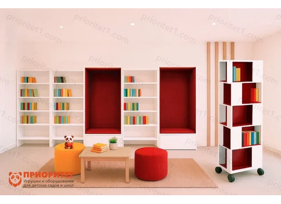 Готовый комплект мебели для библиотеки — это функциональное и современное решение для организации читального зала в школе, вузе или публичной библиотеке. Модульная конструкция включает стеллажи для хранения книг, уютные ниши для сидения и мобильный стеллаж на колёсиках. Такой комплект помогает создать эргономичное, стильное и комфортное пространство для чтения, учёбы и общения.