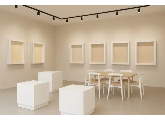 Музейный зал в современном минималистичном стиле — это готовый выставочный зал и экспозиционный зал, в котором продумано оформление выставочного зала и удобство для посетителей. Такой интерьер музея создаёт чистый фон для экспонатов и помогает выстроить понятную подачу: предметы не «теряются», а внимание концентрируется на содержании. Решение подойдёт как зал для выставки, а также как формат под ключ, когда нужно сразу получить оборудование для музея и базовую мебель для музея.