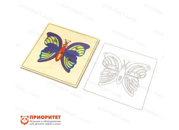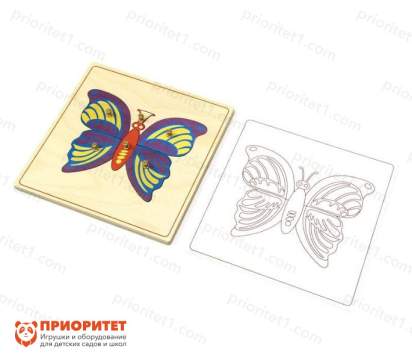 Рамки-вкладыши выполнены из прочной, хорошо обработанной фанеры. Пазл помещается внутри рамки, на каждой детали маленькая металлическая ручка. К каждому пазлу прилагается лист с контурным изображением животного. Все рамки хранятся в специальном шкафчике, входящем в комплектацию.