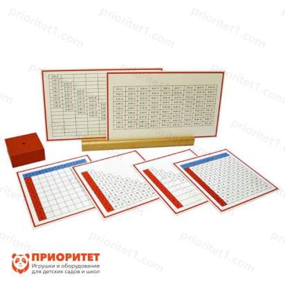 - 3 ящика, обозначенные цветом, и поднос для игры в «Змею», где необходимо последовательно складывать числа, наращивая змею;