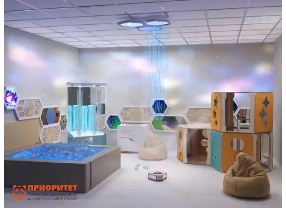 Готовый комплект оборудования, предназначенный для создания полноценной сенсорной комнаты большой площади в детских садах, школах, лечебных заведениях, коррекционных центрах и кабинетах детских психологов. Универсальная компоновка включает всё необходимое для эффективного воздействия на сенсорные системы ребёнка, помогая снимать психоэмоциональное напряжение и корректировать разнообразные нарушения развития.