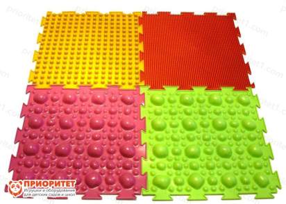 - В данном наборе 4 детали ковра разных видов: мягкая трава, мягкие и жесткие камни, а также массажные шипы. Благодаря тому, что каждый пазл имеет разную текстуру, создается массажный эффект, благоприятно воздействующий на ребенка.