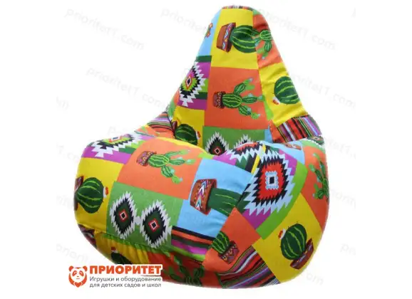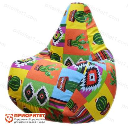 Кресло-мешок с ярким дизайном. Мебель с таким принтом не может остаться без внимания. Стильное сочетание цветов улучшает настроение. Если начать рассматривать рисунок, то можно увидеть кактусы. Такой дизайн оценят дети любого возраста. В комнате подростка тоже будет смотреться стильно и молодежно.