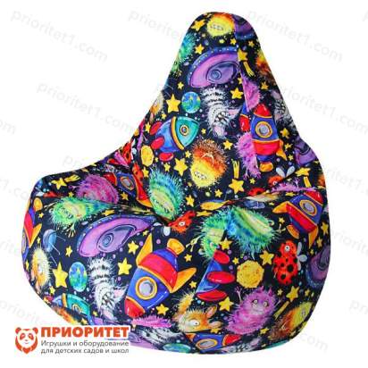 Пестрое велюровое кресло-груша с изображением веселых пришельцев, ракет и летающих тарелок станет источником бесконечной радости, местом полного релакса и уединения для подрастающего мальчика. Здесь можно читать, рисовать, учить уроки, играть на телефоне и выполнять массу других важных для ребенка дел. Родитель, который ищет возможность порадовать свое чадо, теперь точно знает, что делать.