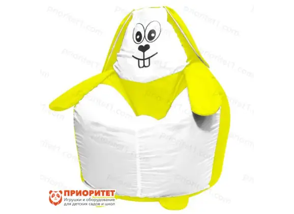 Жёлтый зайка готов принять в свои объятия малыша! Лапки зайки оформлены в виде подлокотников, имеющих жёлтый цвет. У кресла есть спинка, на ней изображена мордочка питомца. Кресло плотно прилегает к полу, поэтому его невозможно перевернуть. Если ребёнок сядет на кресло и начнёт раскачиваться, то оно не сможет упасть из-за большой площади соприкосновения с поверхностью пола.
