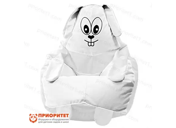 - Универсальное кресло подходит и детям, и взрослым. Оно создает расслабляющий эффект благодаря мягкому материалу и сыпучему наполнителю, что позволяет с комфортом расположиться на животе зайки;