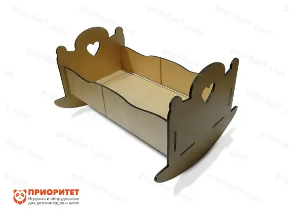 - Представляет собой колыбельку для кукол среднего и большого размера, которая может раскачиваться из стороны в сторону, как настоящие модели. Сделана из фанеры: дерево тщательно обработано, скруглено со всех сторон и покрыто несколькими слоями лака, чтобы избавиться от заусениц.