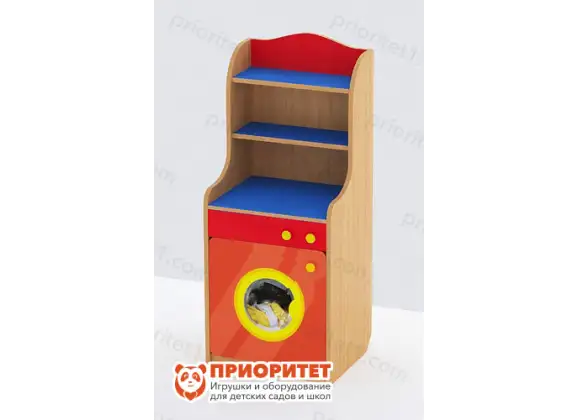 Модуль №2 в кухне «Аленушка» состоит из стиральной машинки, столешницы и двух полочек для игрушечной посуды. Такой игровой модуль сочетается с остальными элементами комплекта, образуя настоящий кухонный гарнитур.