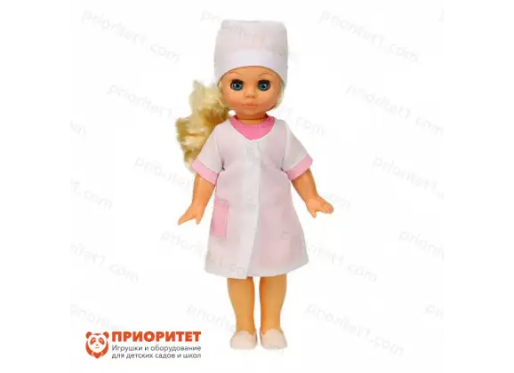 - Данная игрушка является медсестрой и одета в их рабочую одежду: розовое х/б платье, медицинский халат с кармашком для мелочей, шапочка, балетки и белье – одежда легко надевается благодаря липучке на спине и большим пуговкам.