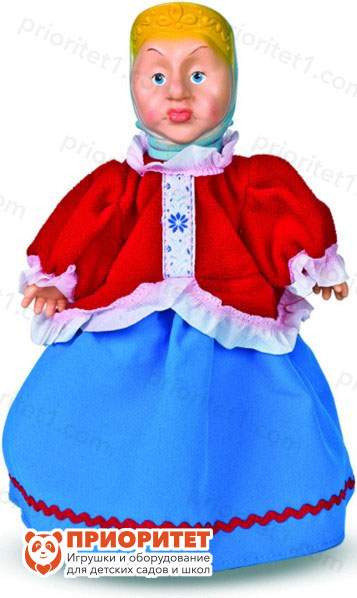Перчаточная кукла Мачеха - это мачеха из сказки «Морозко». Одежда пошита таким образом, что куклу можно надевать на руку и вместе с ней участвовать в театральном представлении. Для того чтобы предать кукле оживленных движений, нужно поместить свою руку внутрь куклы, надеть на указательный палец голову, а другие пальцы вставить в рукава и начать шевелить героем. С помощью перчаточной куклы каждый актер может легко управлять настроением окружающих людей. Имея в наличии подходящий набор кукол, можно с легкостью поставить сценку или целый спектакль по мотивам известных сказок или более серьезных произведений. Также можно написать собственный сценарий и представить его на суд зрителей.