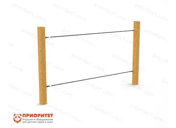 Лаз «Канатный мостик» – это спортивно-игровой инвентарь, предназначенный для физического развития маленьких детей. Представляет собой сборную конструкцию из двух канатов, натянутых между брусьями. Задача детей – быстро пролезть «между» или «над» канатами, преодолевая полосу препятствий.